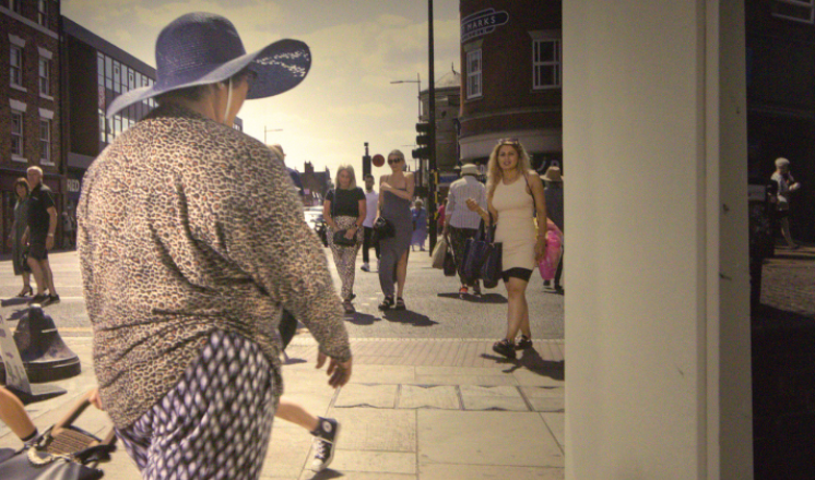 Richard Ansett’s Liminal Presence was a street photography exhibition that ran from Saturday 22 November 2025 to Sunday 15 February 2026. This exhibition, one of the largest scale solo exhibitions of street photography by a living artist, invited the viewer to celebrate the beauty and drama of the everyday life in Lincoln. Using a powerful flash mounted on a 10-foot pole and a waist-level viewfinder camera, Richard took to Lincoln High Street one summer’s day in 2024, capturing candid moments of shoppers and passers-by in striking detail. These images were displayed floor to ceiling in the usher gallery, creating a larger than life experience in the gallery. Images: c Richard Ansett
